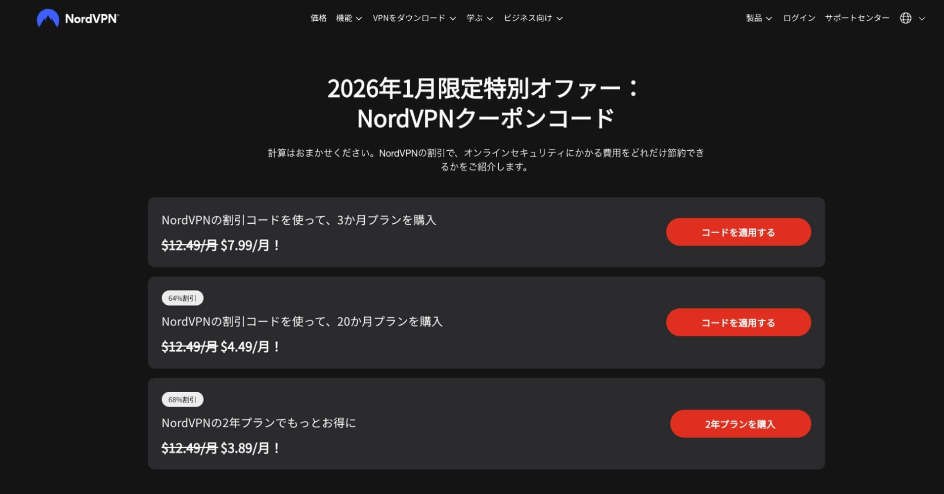 NordVPN公式クーポンサイトはこちら。 - クーポンコードが使えない場合、どうすればいいですか?